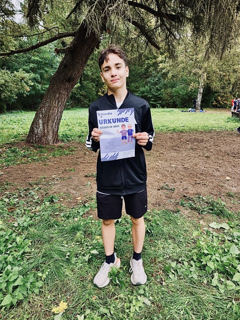 Bei trockenem Herbstwetter herrschten ideale Bedingungen – und viele unserer Läuferinnen und Läufer zeigten starke Leistungen. Die ersten 15 jedes Laufs qualifizierten sich für das Berlin-Finale am 18. März im Stadion Rehberge. Besonders Johann Lott (Klasse 7) überzeugte mit einem deutlichen Vorsprung und sicherte sich den Sieg in seiner Altersklasse. Auch in den anderen Altersklassen schafften es einige SchülerInnen unser Schule ins Berlin Finale (siehe Einzelbilder). Herzlichen Glückwunsch! Doch auch alle anderen Teilnehmenden haben sich tapfer geschlagen und das Arndt-Gymnasium sportlich stark vertreten.
