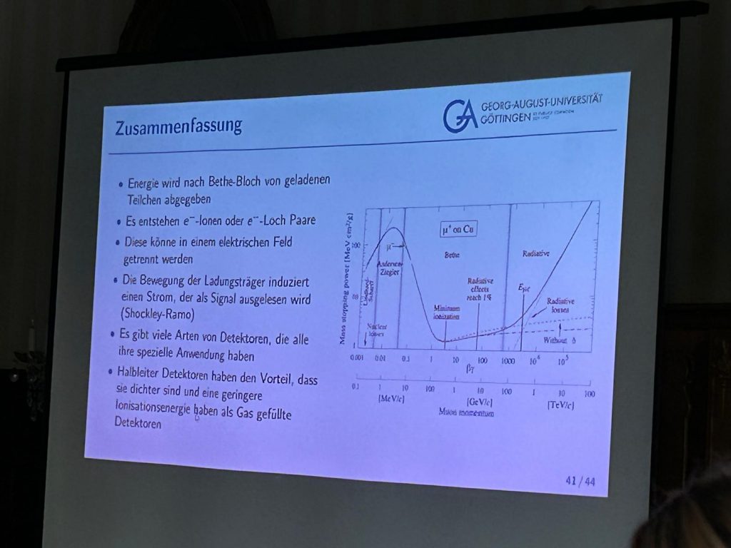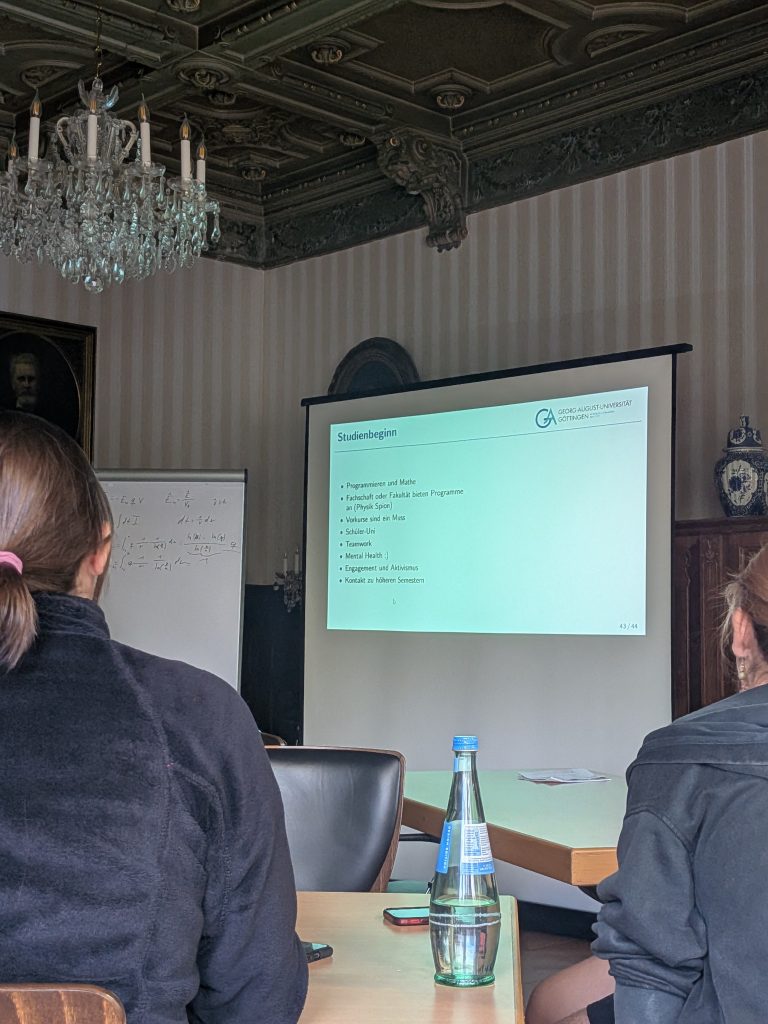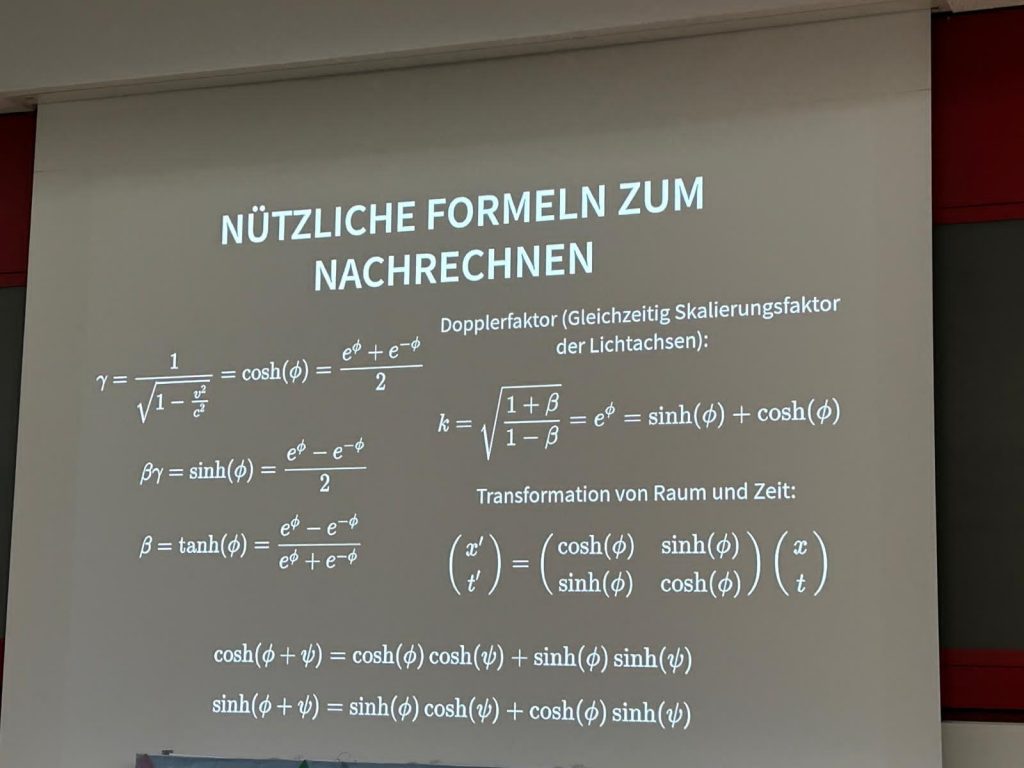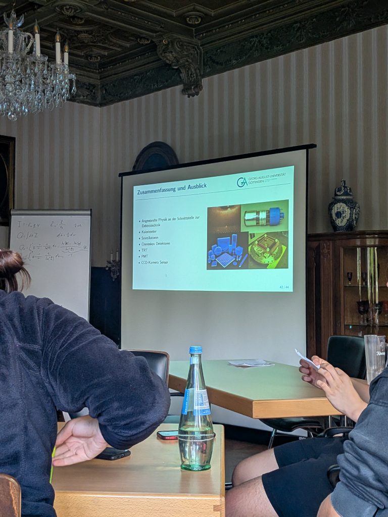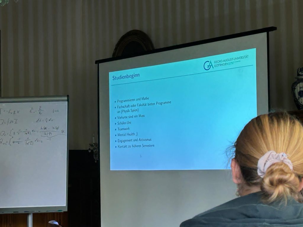 Im Verlauf der Tagung konnten wir zahlreiche spannende Vorträge hören, in denen Teilnehmende ihre eigenen Projekte vorstellten – von theoretischen Themen der Quantenphysik bis hin zu experimentellen Arbeiten in Astronomie und Technik. Darüber hinaus waren auch Expertinnen und Experten aus Wissenschaft und Forschung eingeladen, die in ihren Beiträgen Einblicke in aktuelle physikalische Fragestellungen gaben und ihre neuesten Ergebnisse präsentierten. Besonders beeindruckt hat uns, wie vielfältig und kreativ die Herangehensweisen der Vortragenden waren und mit welcher Begeisterung sie ihre Themen vermittelten.