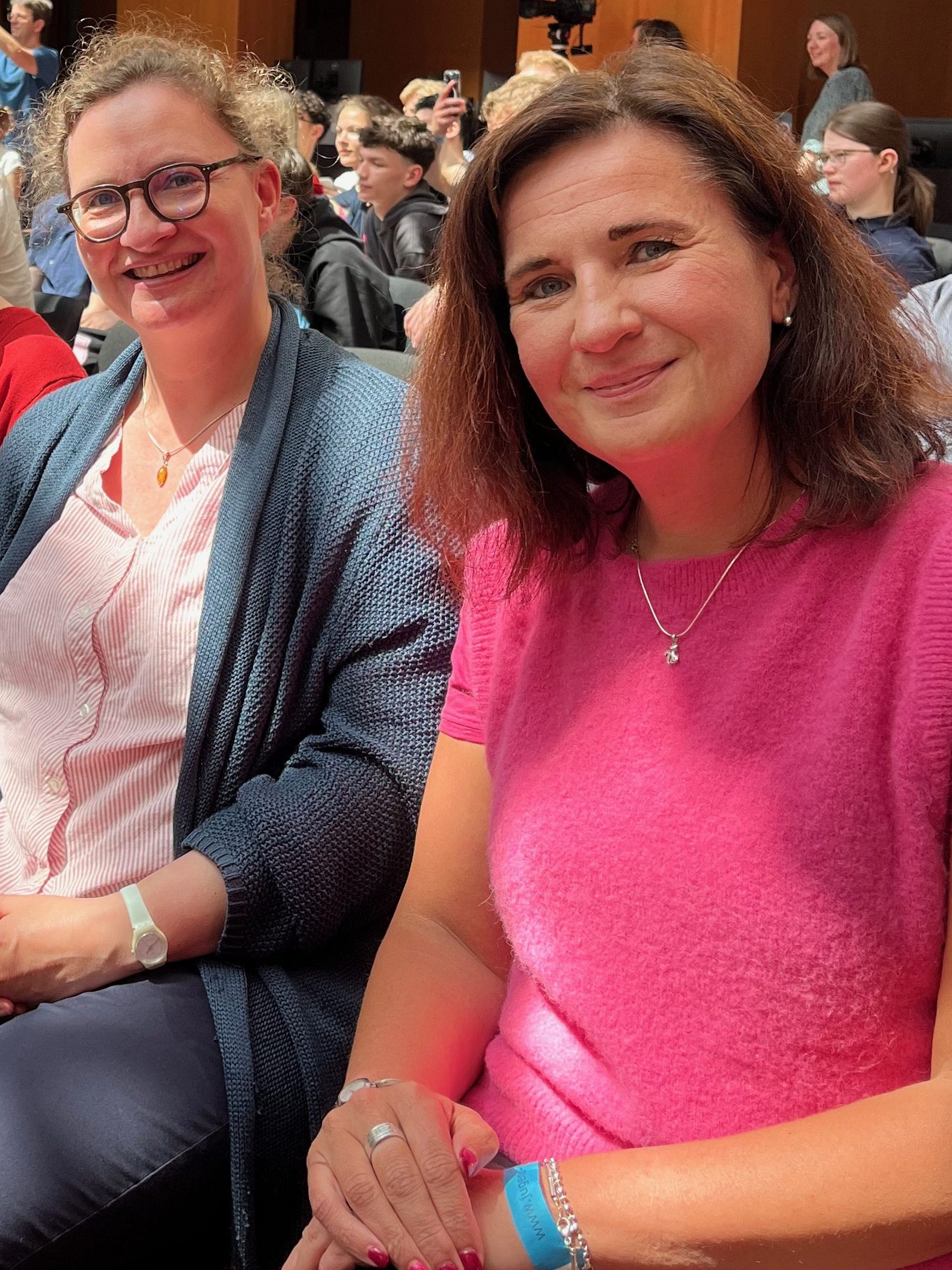 Beim anschließenden Empfang hatten wir in unserer kleinen Gruppe viel zu besprechen: Wie hatten wir die Debatten erlebt? Was gefiel uns besonders an der Argumentation der Debattant*innen? Hätten wir die gleiche Entscheidung wie die Jury getroffen? Und vor allem: Was nehmen wir aus dem Wettbewerbsfinale für das Wettbewerbsjahr 2026 in unsere Schule mit? Wir waren uns einig, dass „Jugend debattiert“ eine wunderbare Chance ist, sich in der Kunst des fairen Dialogs zu üben, und dass es viel Kraft und Ausdauer kostet, so weit zu kommen. Aber letztlich ist die Bühne für Debatten überall dort, wo Demokratie gelebt wird, ob im kleinen Familienkreis, unter Freunden, in Schule, Beruf oder Universität – nur fair und stark muss argumentiert werden.