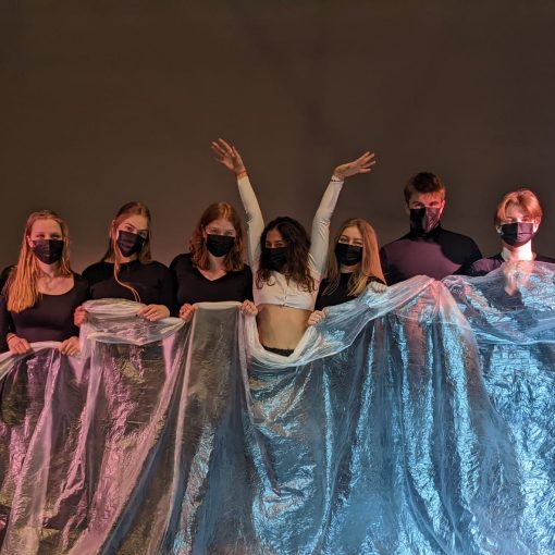 Der Bühnenaufbau war während unserer Führung vorangeschritten, überall hörte man hämmern, schrauben und Zurufe. Die beiden Rechtecke, die das Bühnenbild von Alaz Deniz Köymen dominieren und die Möglichkeiten der Simultanbühne eröffnen, standen schon. Frau Dywicki verdeutlichte uns, was für ein punktgenaues Training für die Schauspieler*innen nötig ist, damit sie in diesem Bühnenbild sicher spielen können.