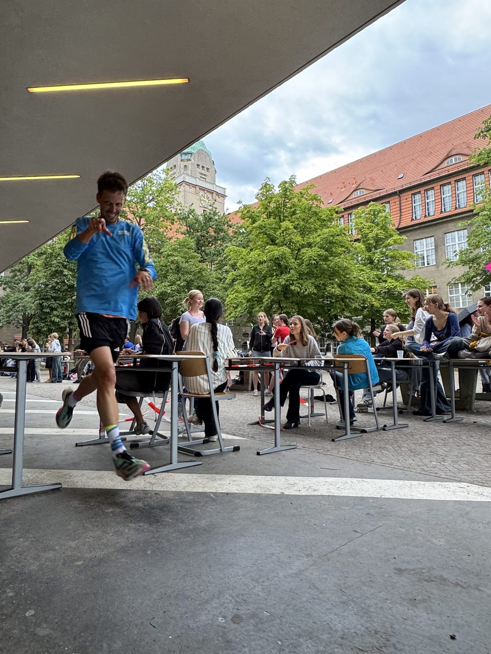 Trotz der kurzfristigen Organisation war die Motivation auf dem Platz riesig. Mit lauter Musik und motivierenden Sprüchen wurden die Läufer*innen kräftig angefeuert. Dass der Lauf auf Freiwilligkeit basierte, tat dem Ehrgeiz keinen Abbruch – im Gegenteil: