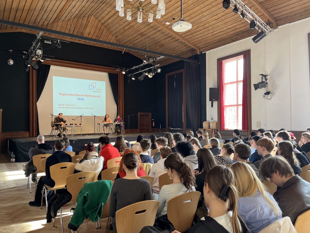 Wir gratulieren alle Teilnehmer*innen, die sich gemeinsam auf diesen Wettbewerb vorbereitet haben und am Wettbewerbstag ihr Bestes gegeben haben, sei es als Debattant*in, Juror*in oder Zeitwächter*in. Besondere Anerkennung gilt natürlich den Sieger*innen des Wettbewerbs, die sich für den Landeswettbewerb qualifiziert haben, der am 13.03.2026 im Abgeordnetenhaus Berlin stattfindet und bei dem sie den Regionalverbund III vertreten werden. Wir wünschen ihnen dafür viel Erfolg!